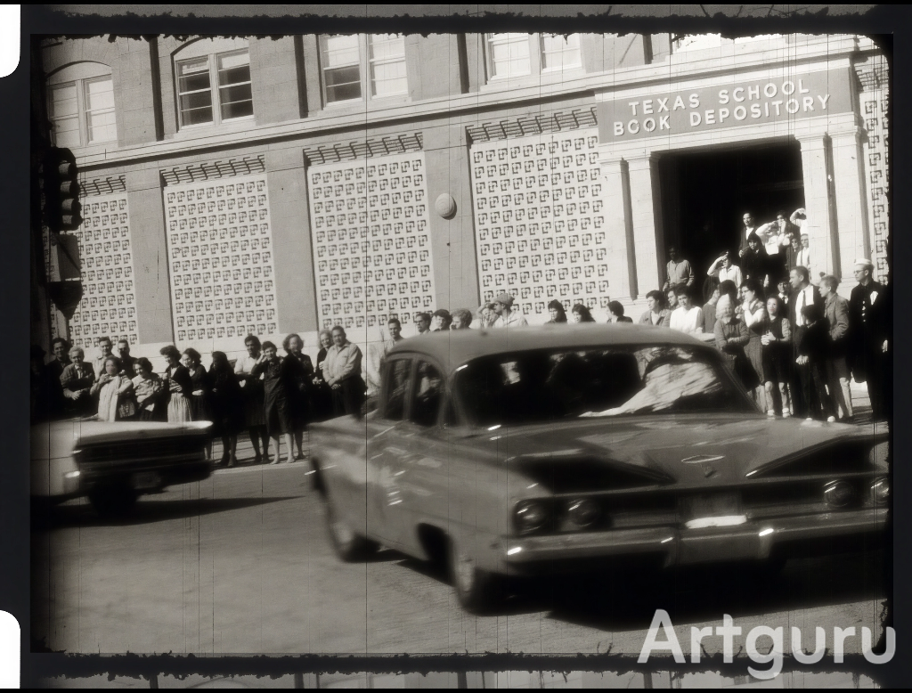 The first one where I thought ‘ok’ was after using Topaz. The frame is from the 6th floor museum video. Is that Oswald’s t-shirt creeping through?