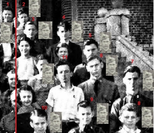 The trick is to now match one of these faces with one of the above faces numbered 1-11. http://s25.postimg.org/j6ituoqq7/Company_D_1940.jpg