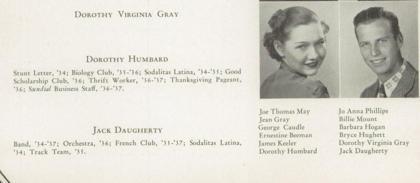 This has Billy Daugherty in the same '36 yearbook as Jack "Daugherty" with an A.