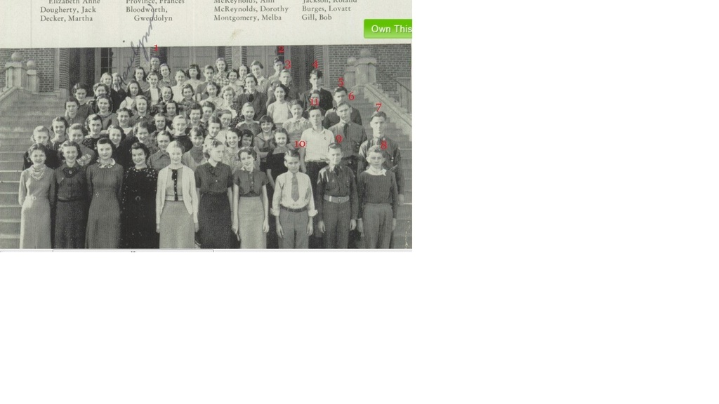 Jack in French Club 1936. He would be 13 years old in this picture. I have numbered all males 1-11 I